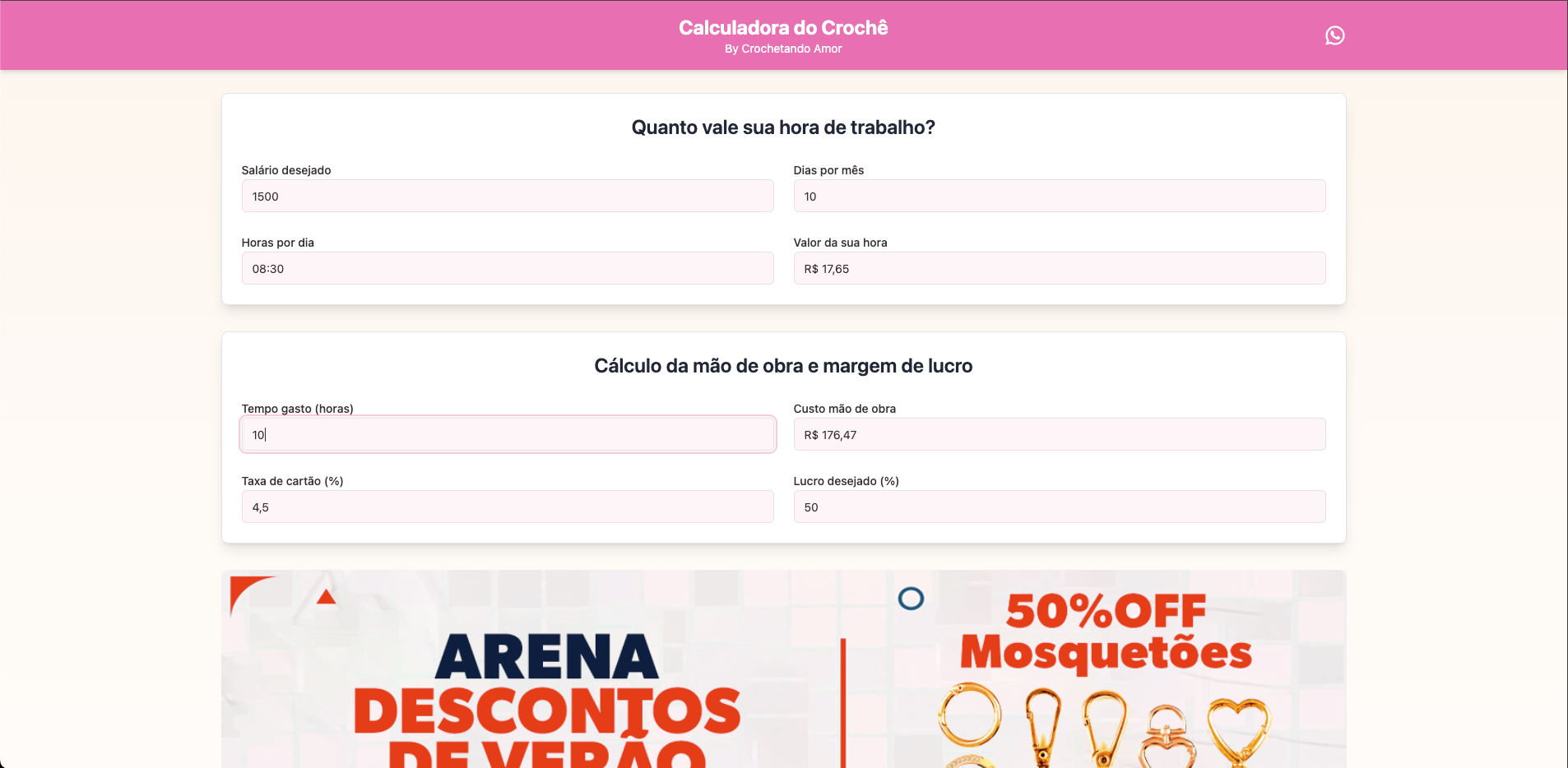 A simple web application for calculating labor and expenses for crocheters, arriving at the result with hourly labor cost, product price, and profit.